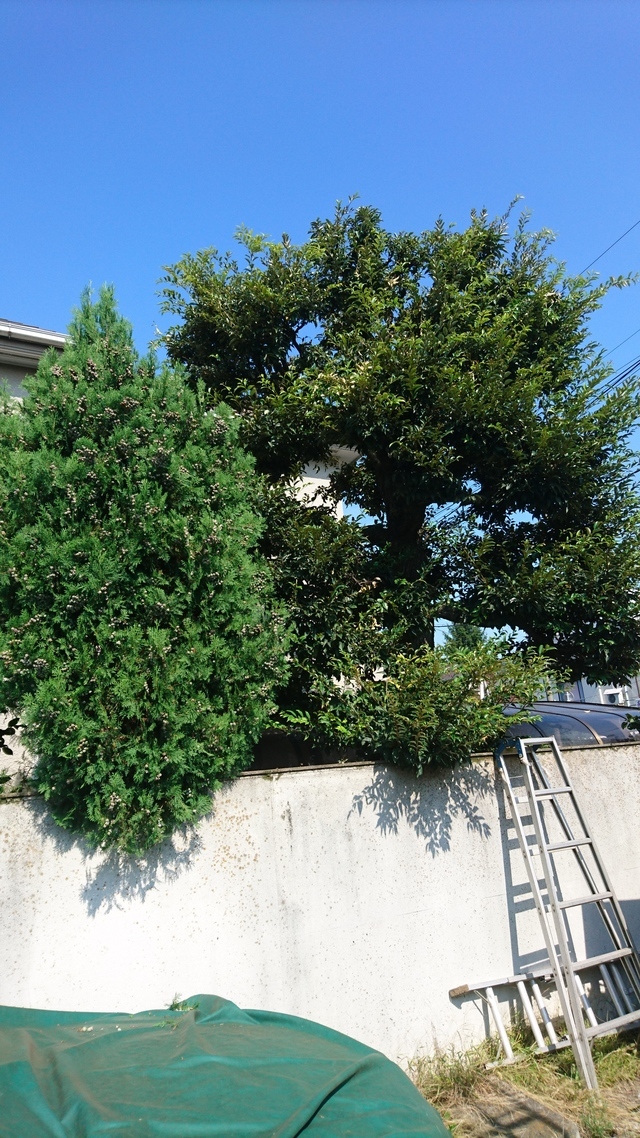 ご年配の奥様からの依頼で 以前はご主人様がお手入れをして 体調を壊してからはここ数年 一切お庭のお手入れが出来なくなり 思い切って伐採をしたいとの事でした 日当たりが良くなり 大変喜んで頂けました