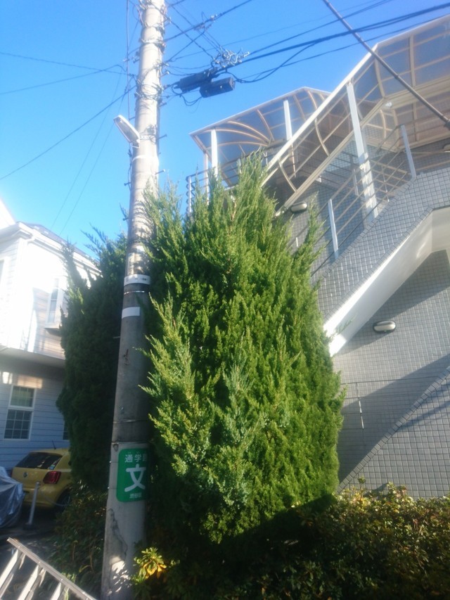 老人ホームの敷地内から私道に出た剪定です 歩行者からクレームが入ったみたいです