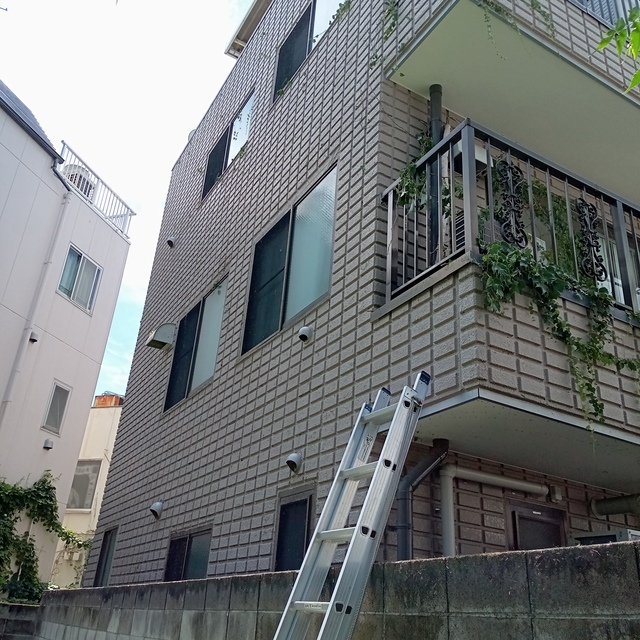 建物の横にもツタが有り足場の悪い中 何とか作業を終わらせる事が出来ました